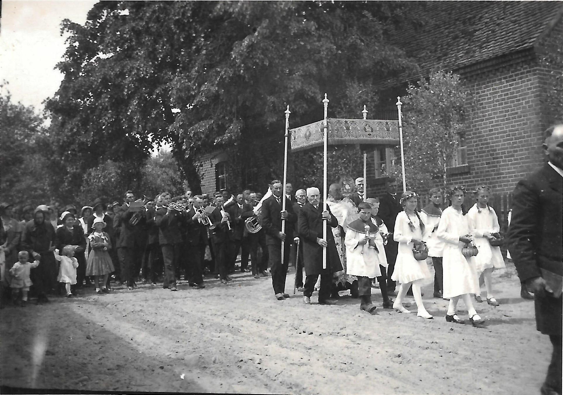 Ks. Alfons Sobierajczyk. Procesja Bożego Ciała w Wielkim Buczku - lata 30-te ubiegłego wieku. Źródło: zbiory prywatne P. Oszczypała.