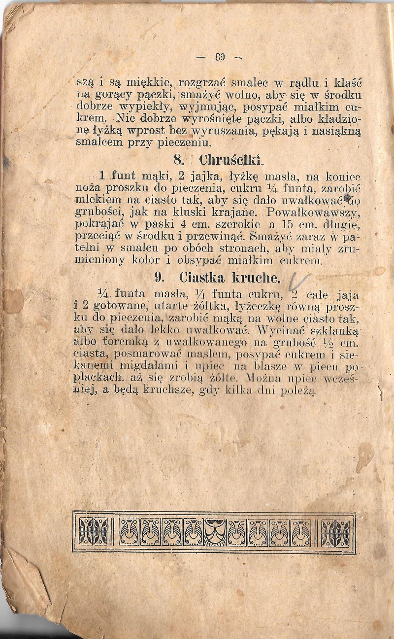 Poniżej przepisy na ostatkowe słodkości z książki kucharskiej z początków XX w. Dla tych, którzy chcieliby skorzystać z przepisów podpowiadamy, że 1 funt to 0,454 kg.