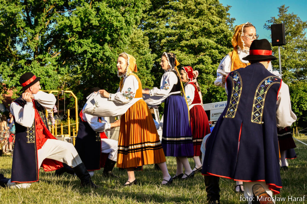 Gwiazdą popołudnia był Zespół Pieśni i Tańca Krajna z Nakła, występujący w malowniczych strojach, prezentując suity polskie oraz ożywiając dawne obyczaje weselne i świętojańskie. Ich występ porwał publiczność w podróż przez barwne tradycje, zanurzając ich w folklorze pełnym wspomnień i radości.